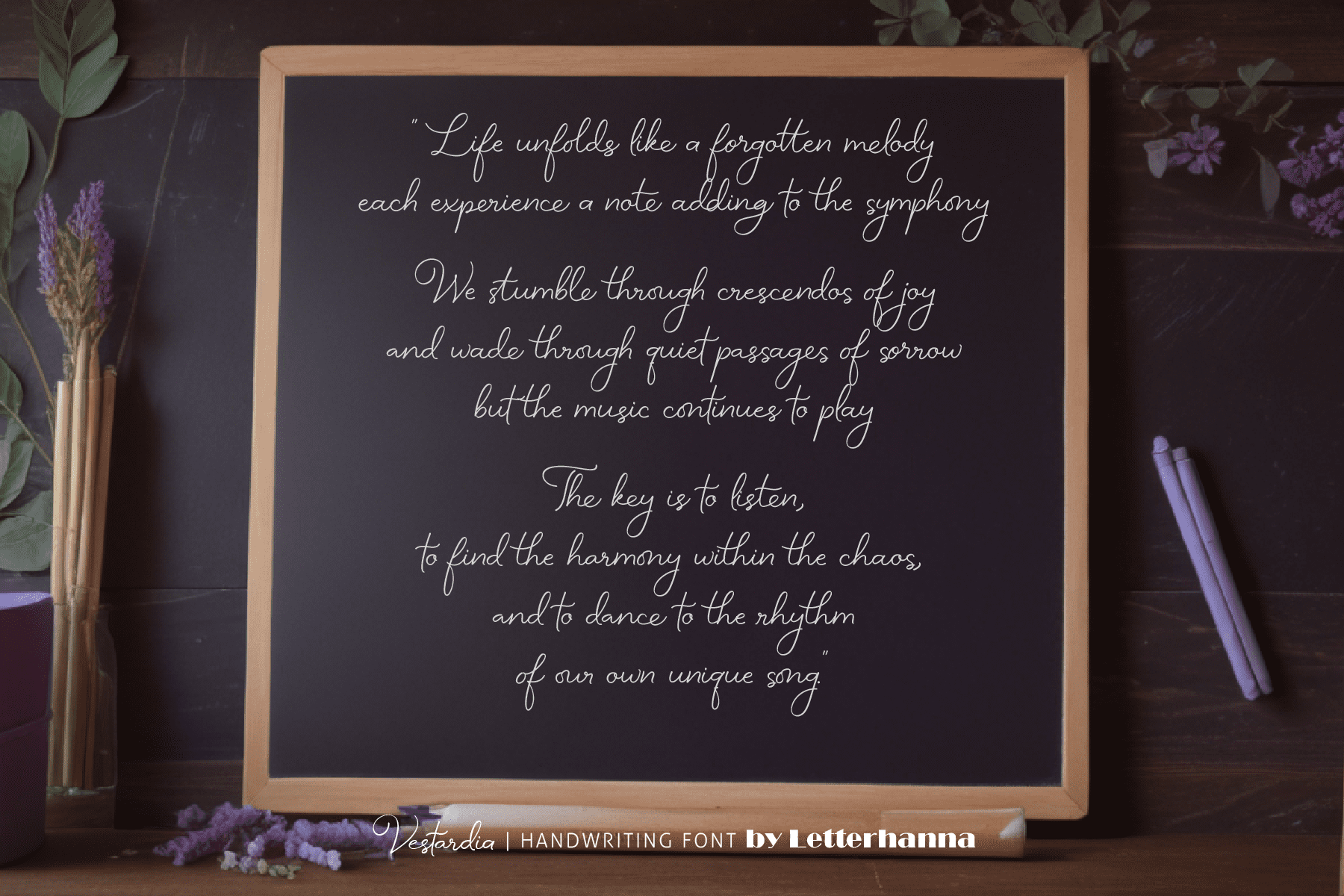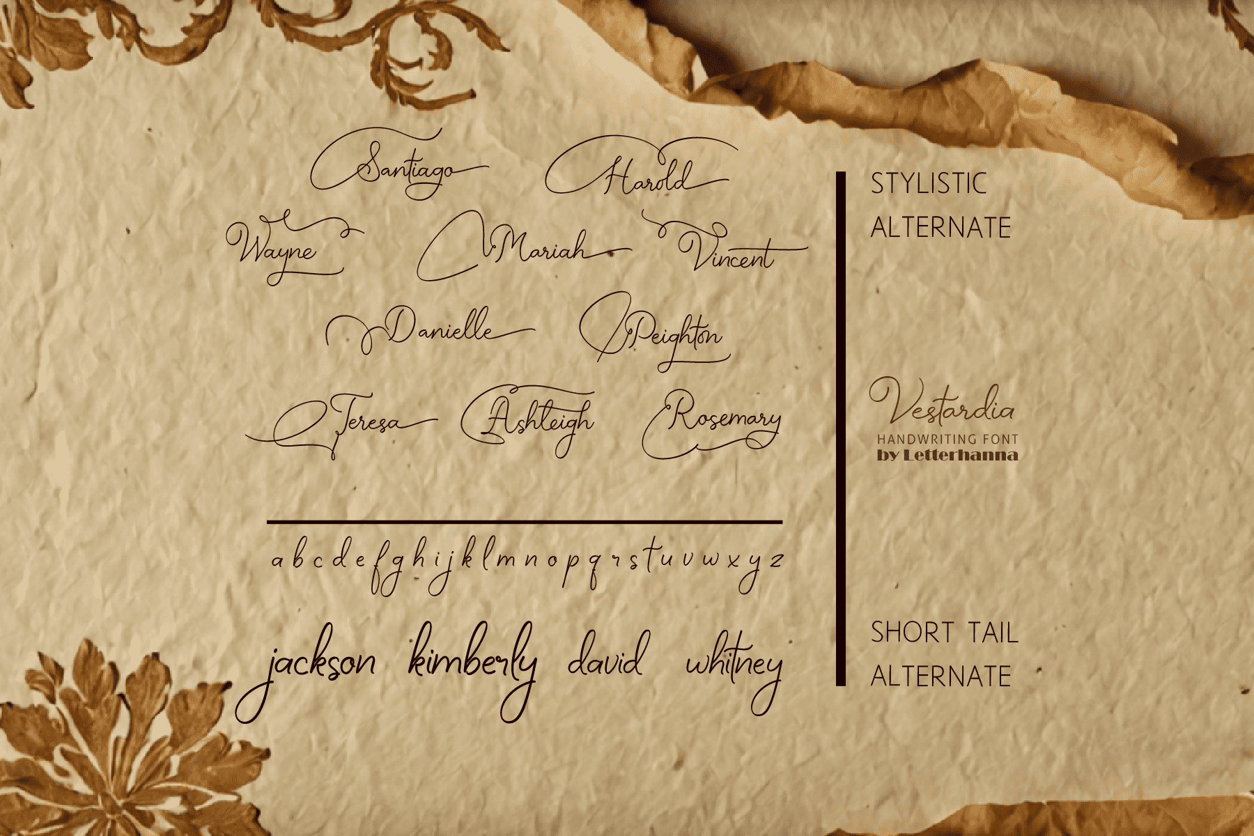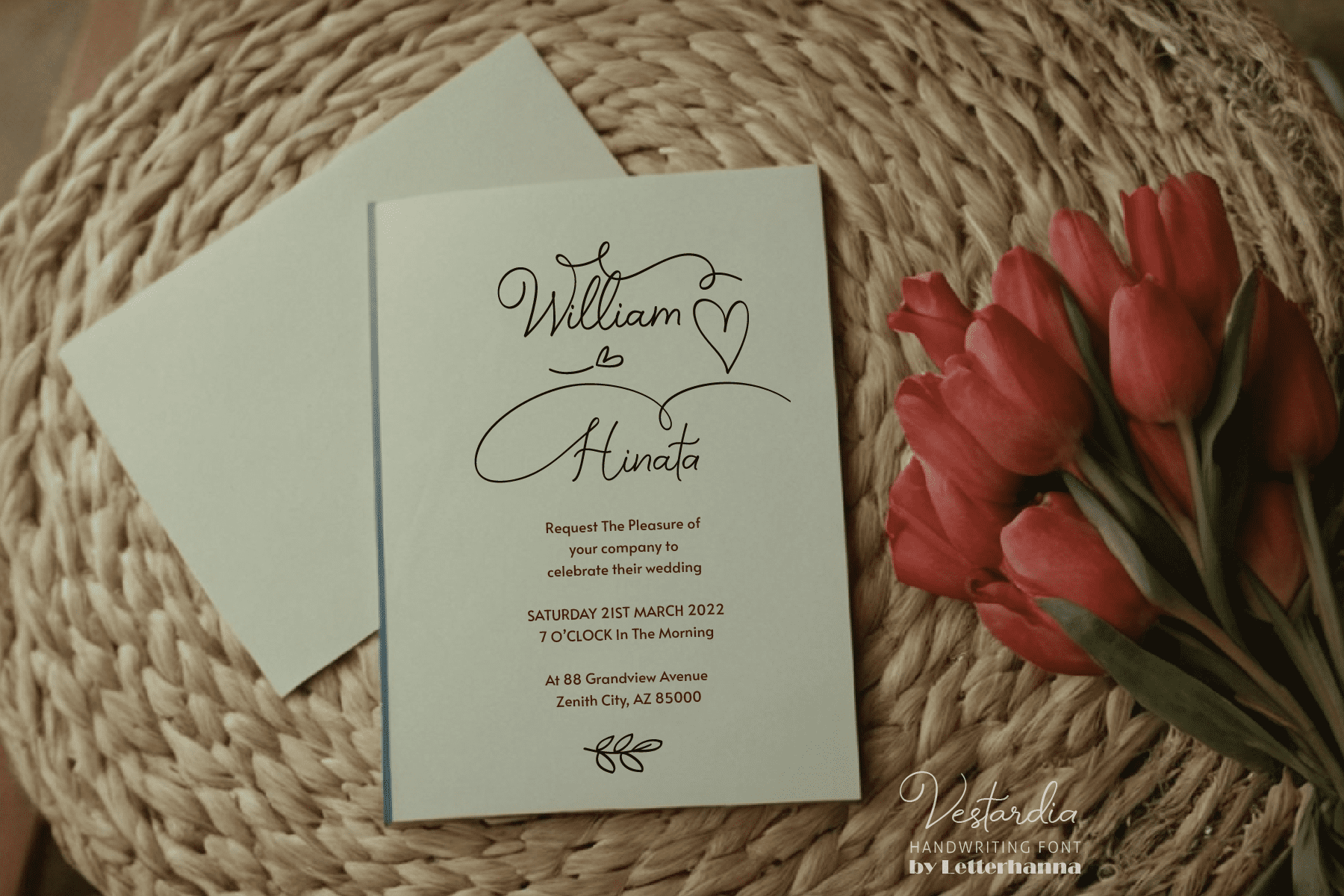 This captivating new handwriting script font transcends the ordinary. Vestardia boasts a treasure trove of stylistic alternates, swashes, and ligatures. These design flourishes dance across the page, allowing you to craft text with effortless elegance and a touch of whimsy. It’s perfect for adding a personal touch to wedding invitations, heartfelt letters, or captivating social media posts.