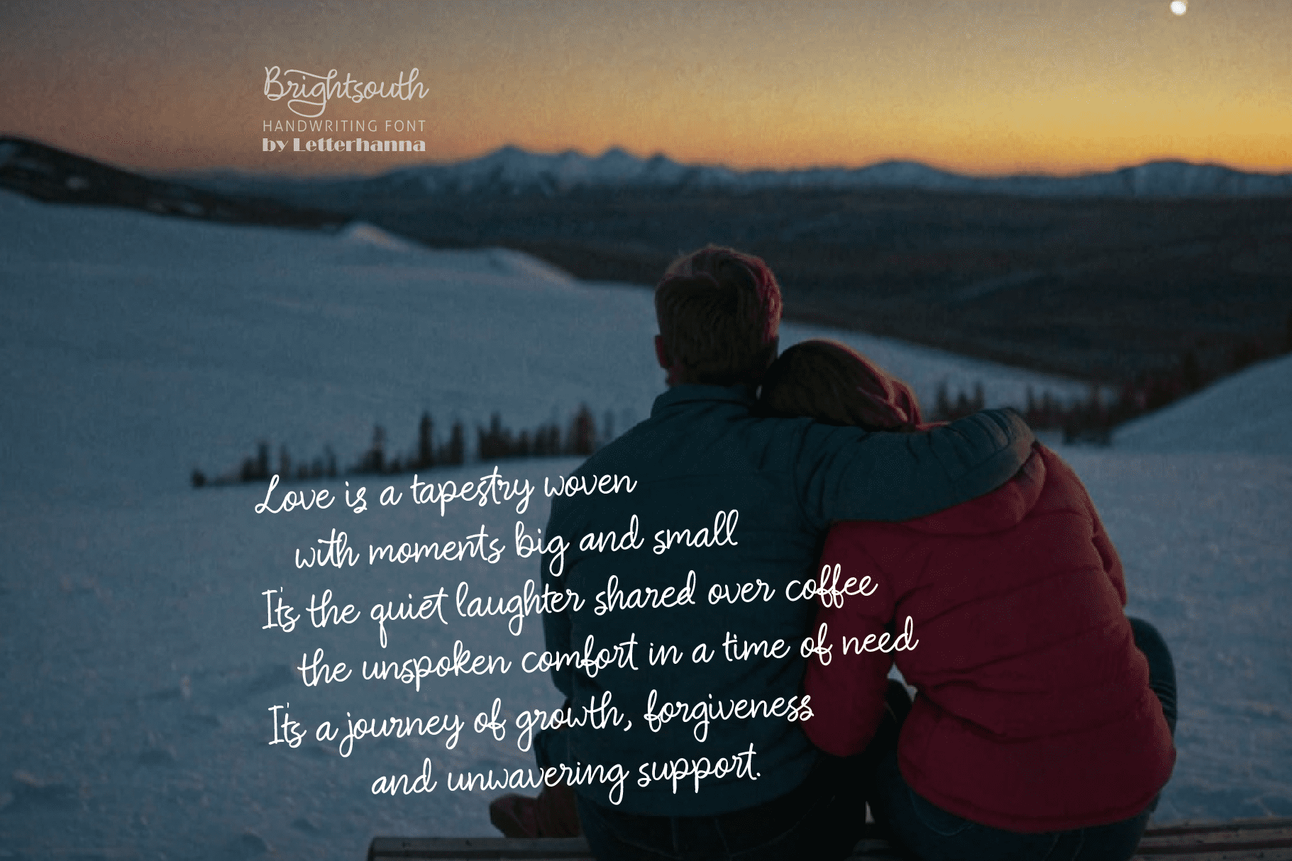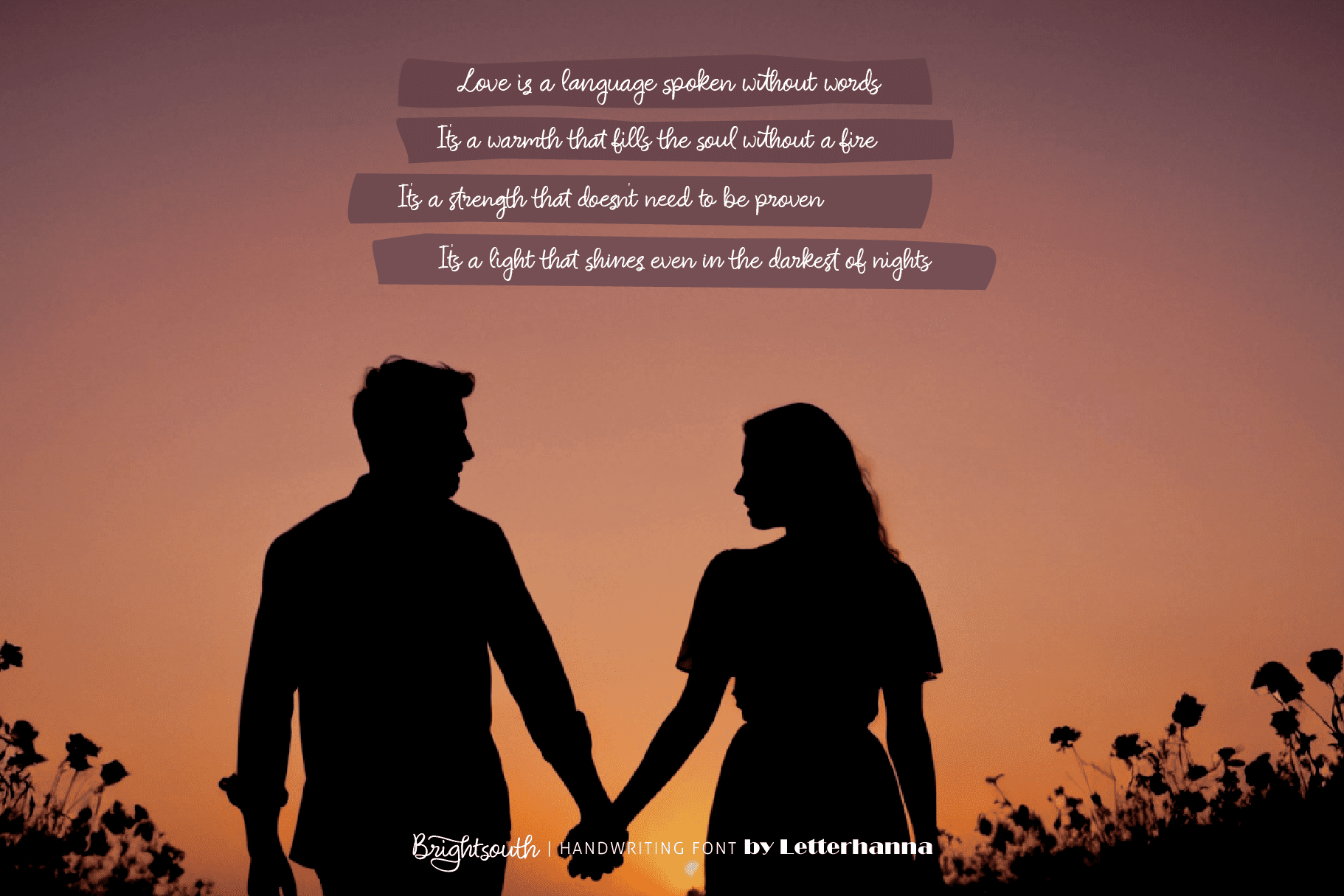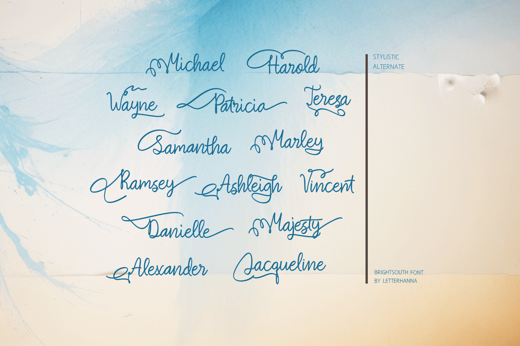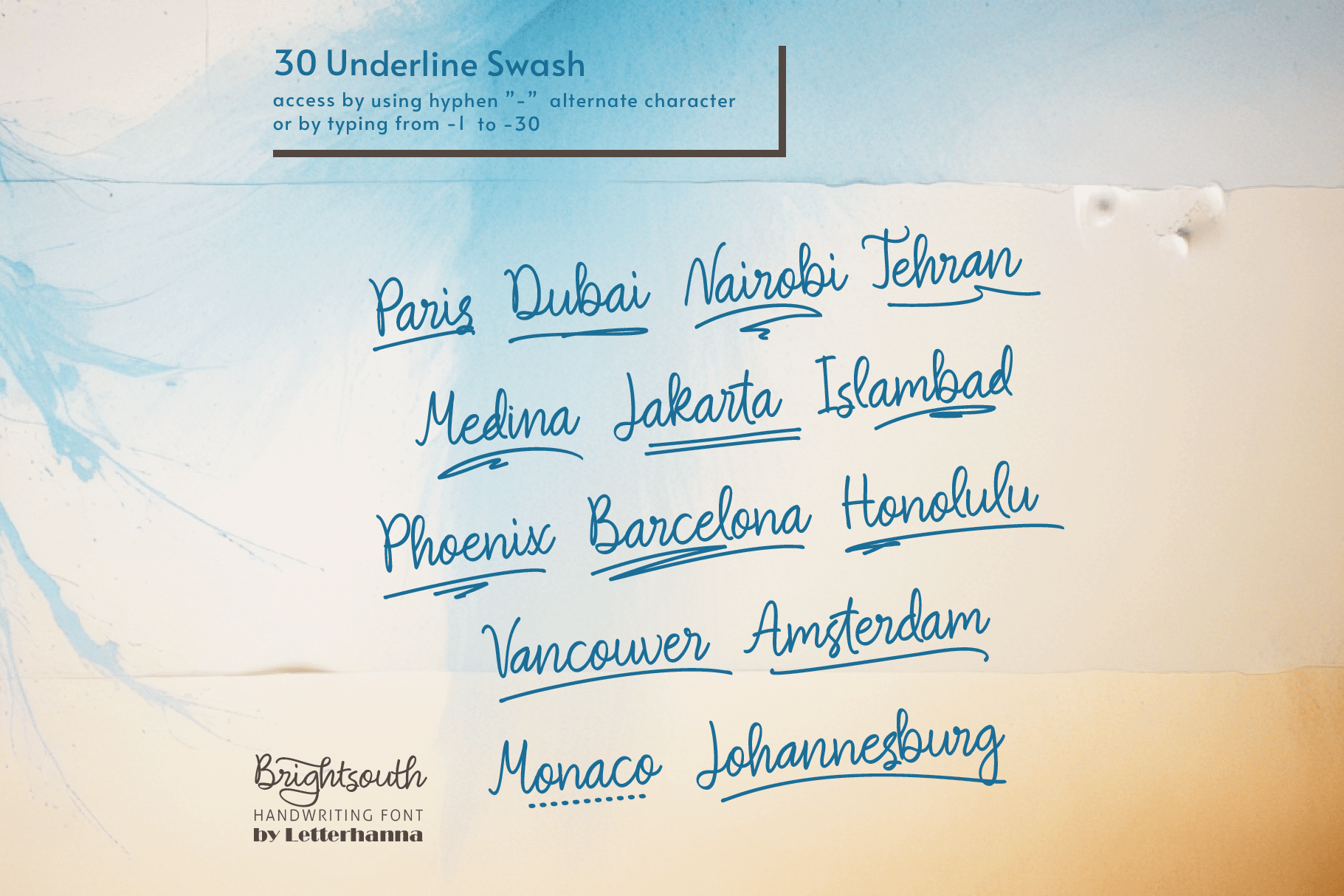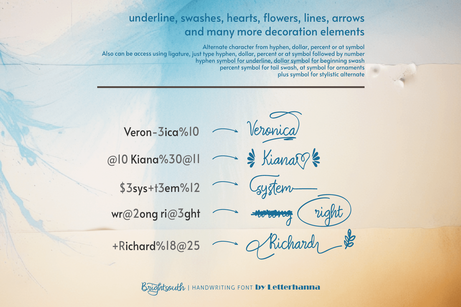 Introducing Brightsouth, a bold and dazzling script font ready to light up your designs! Brightsouth isn’t your average handwriting font. It bursts with personality, offering a treasure trove of stylistic alternates, swashes, and ligatures.
