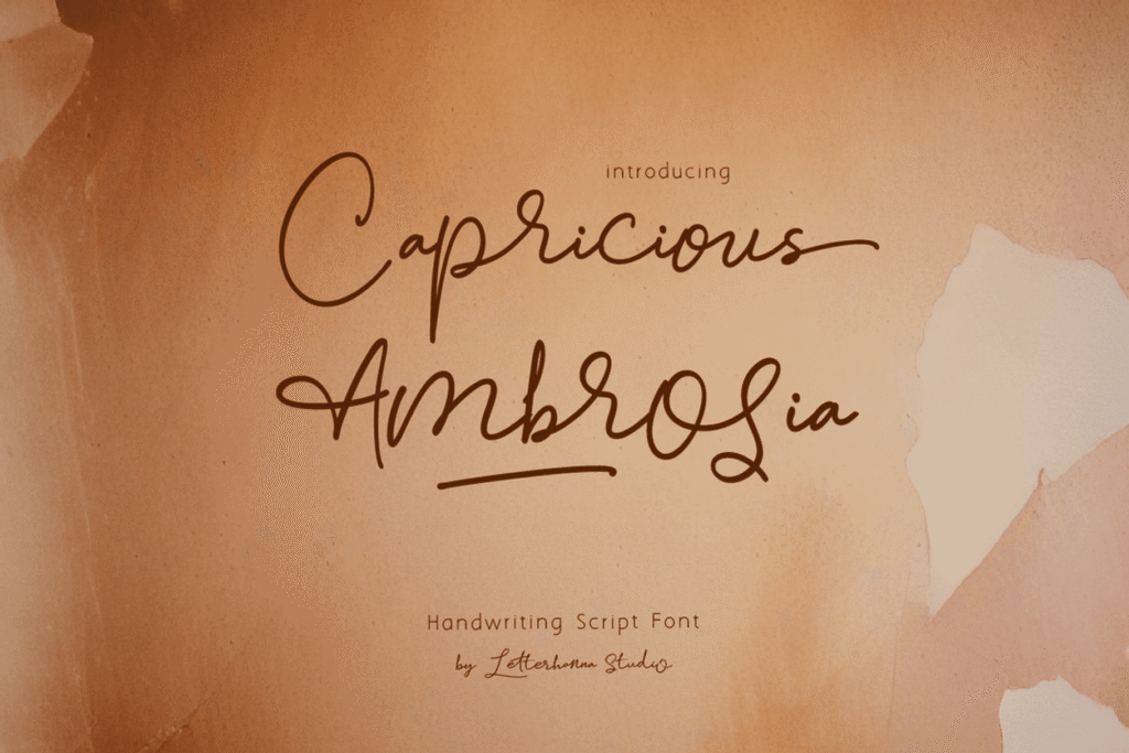 Capricious Ambrosia Font was created to look as close to a natural handwritten script as possible by including over 45 natural-looking opentype ligatures, Uppercase and lowercase Stylistic Alternate, a lot of head/beginning swashes and tail/ending swashes. There are also underline swashes included and lot more ornaments, arrow, scribbles, etc.