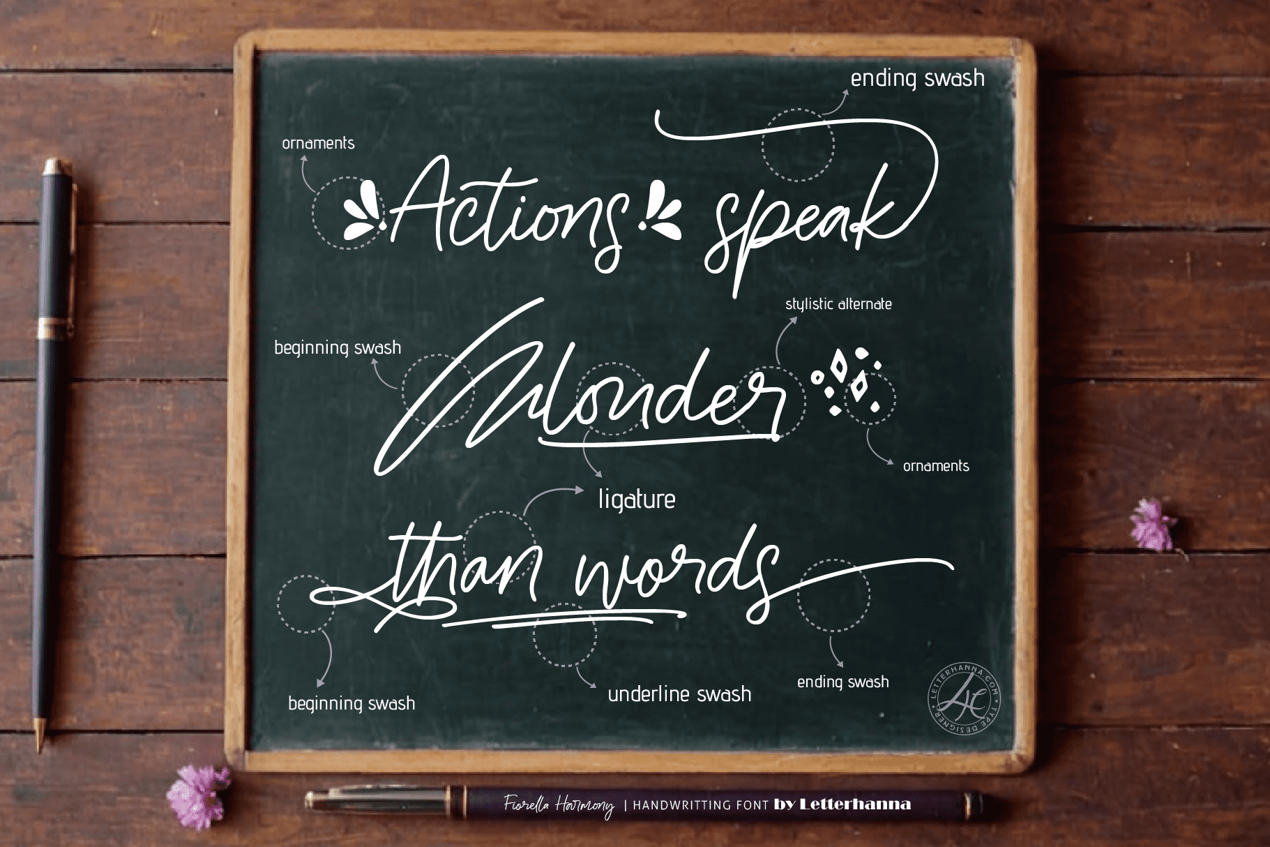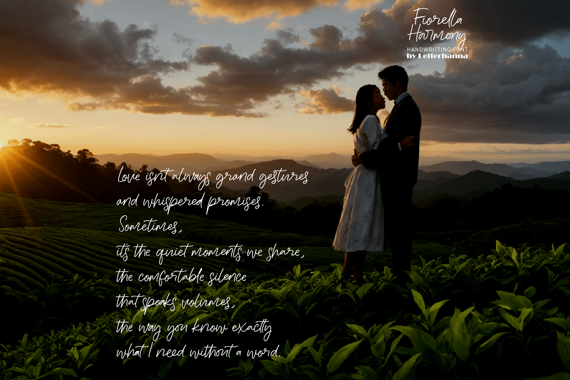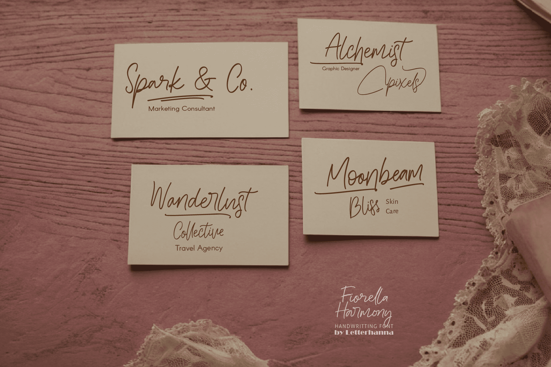 Whether you’re a seasoned designer or just starting out, Fiorella Harmony’s user-friendly design makes it easy to create stunning text effects. With its smooth letterforms and beautiful flourishes, Fiorella Harmony is sure to become your go-to font for adding a touch of handwritten magic to your designs.