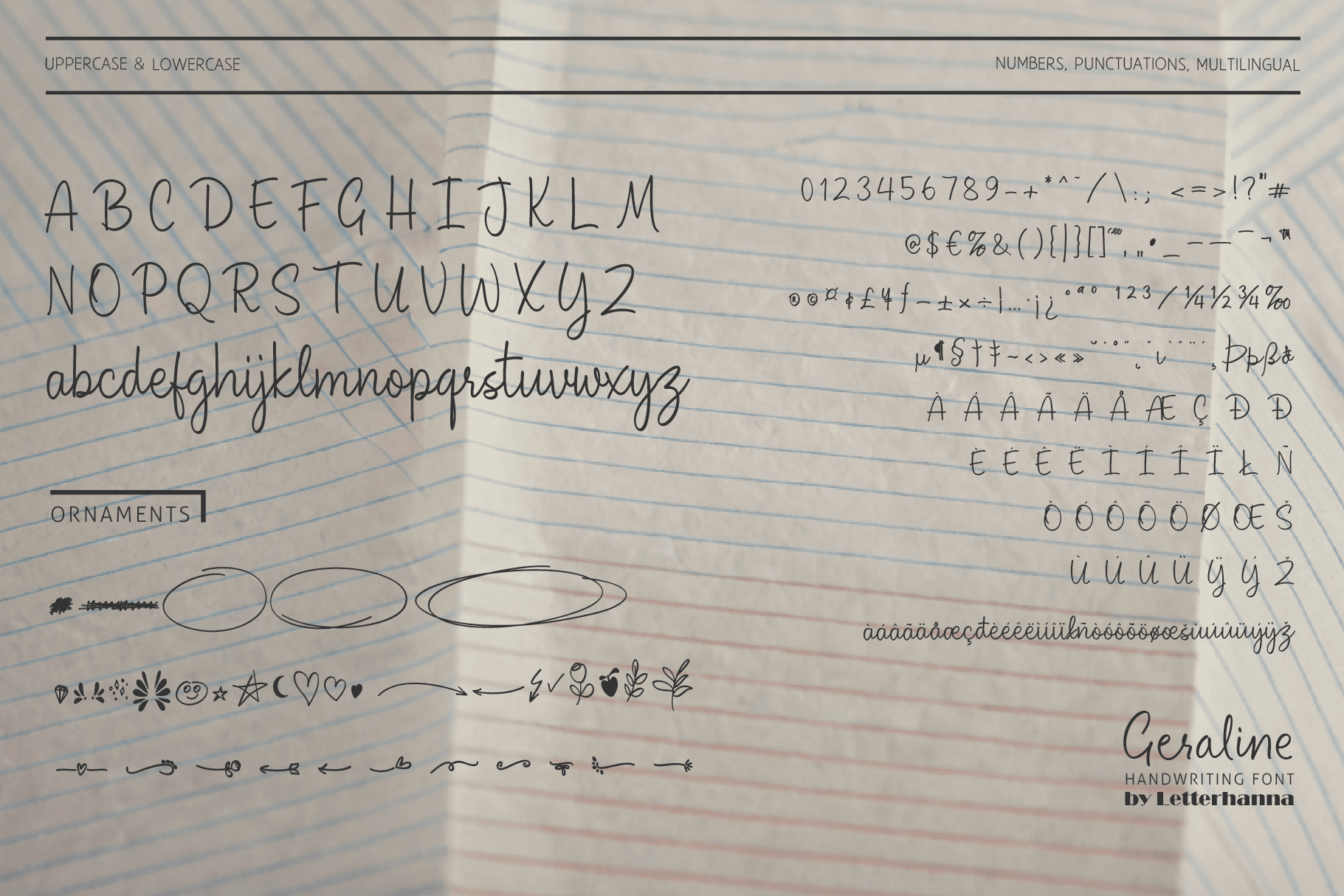 Geraline is a beautifully crafted handwriting script font that mimics the fluidity and charm of natural pen strokes on paper. With its organic flow and smooth curves, this font exudes warmth and authenticity, making it perfect for projects that require a personal and elegant touch. Whether you’re designing wedding invitations, branding materials, or heartfelt quotes, Geraline adds a sophisticated yet approachable feel to your typography.