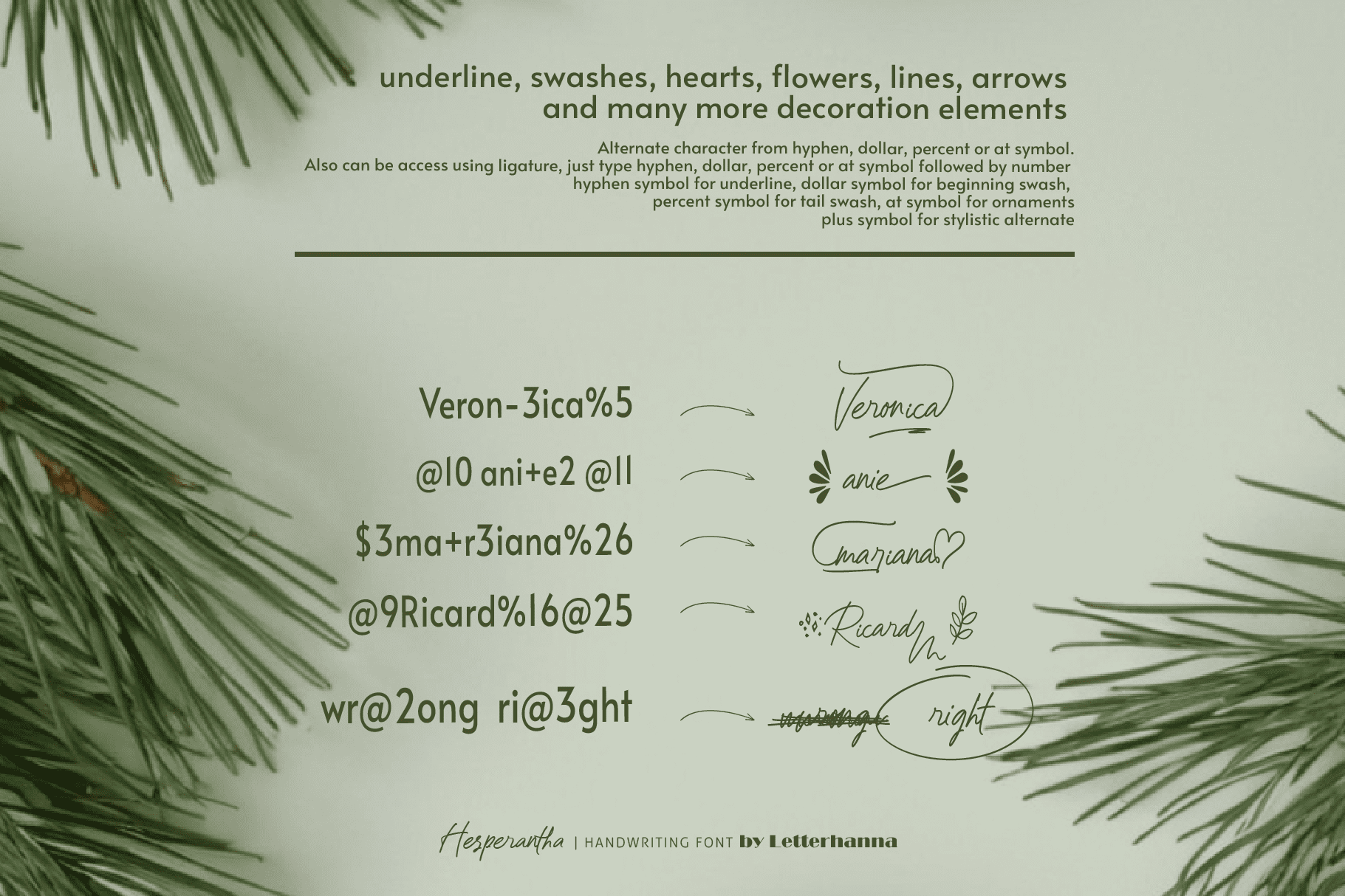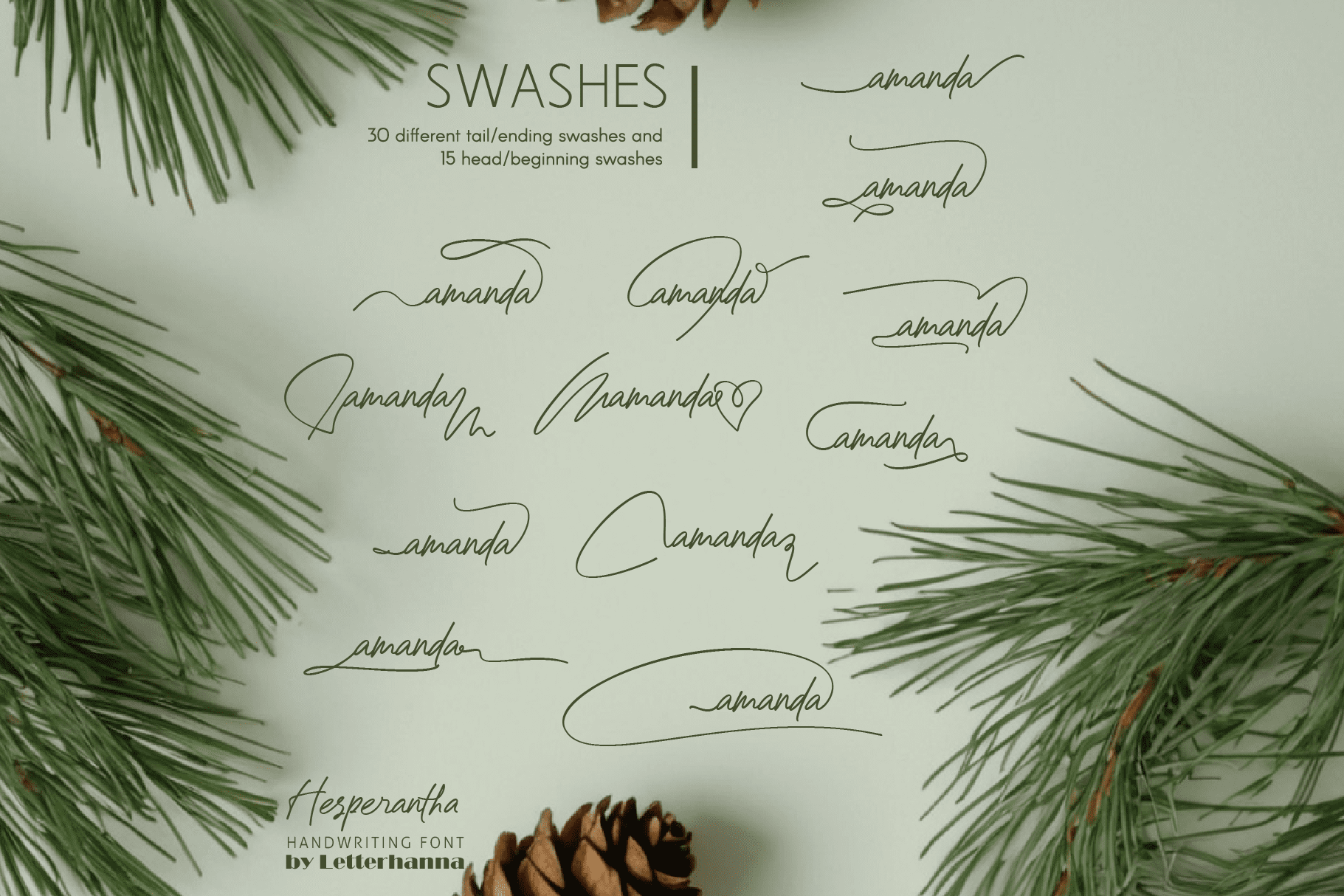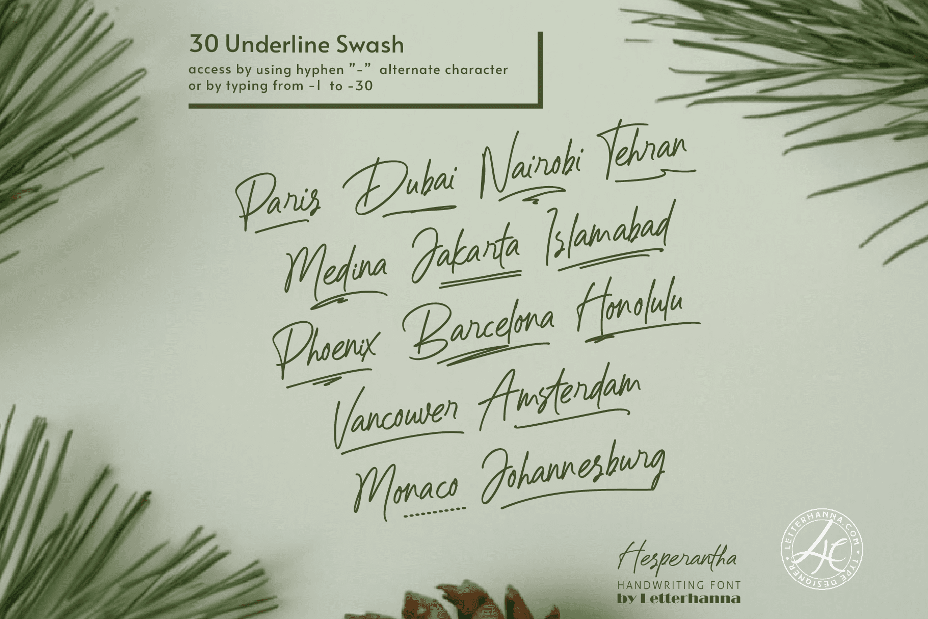 Gain easy access to all alternate glyphs, swashes, ornaments, and underlines by simply using ligatures. You can try them out yourself in the font preview tool on our website, letterhanna.com.
