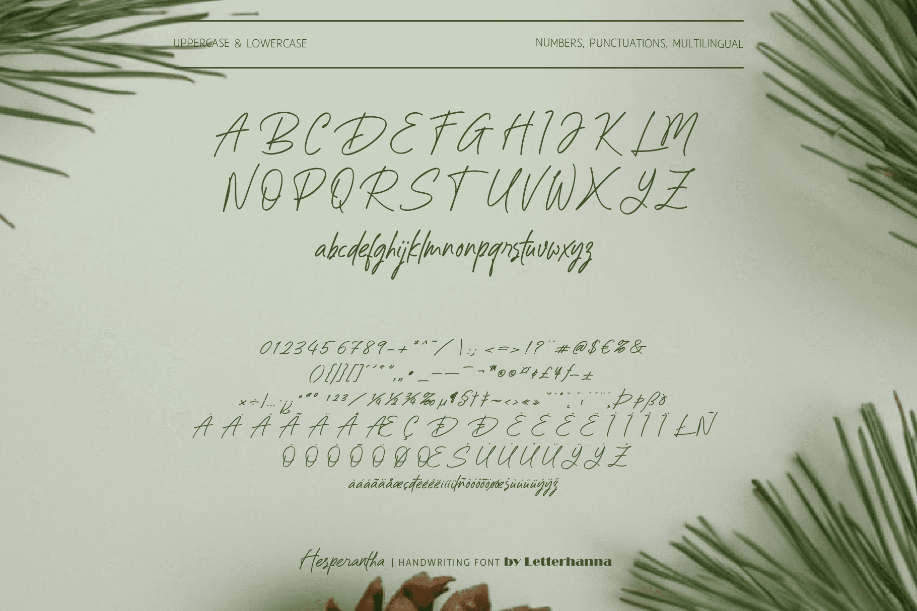 Introducing Hesperantha, a new handwritten script font that captures the essence of elegance and informality. Inspired by the delicate beauty of the Hesperantha flower, this font boasts graceful curves and subtle variations in stroke weight, reminiscent of a well-practiced penmanship.