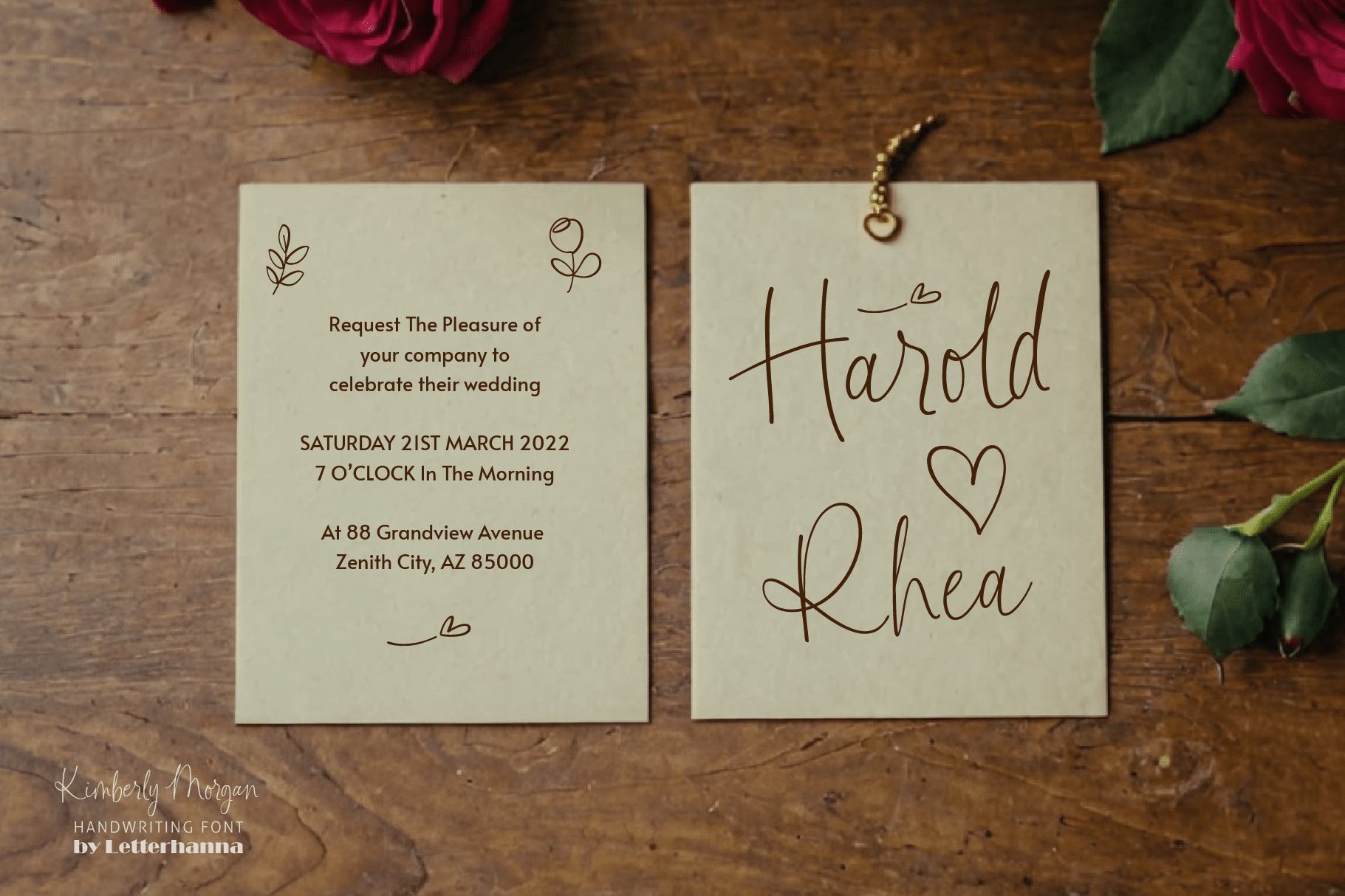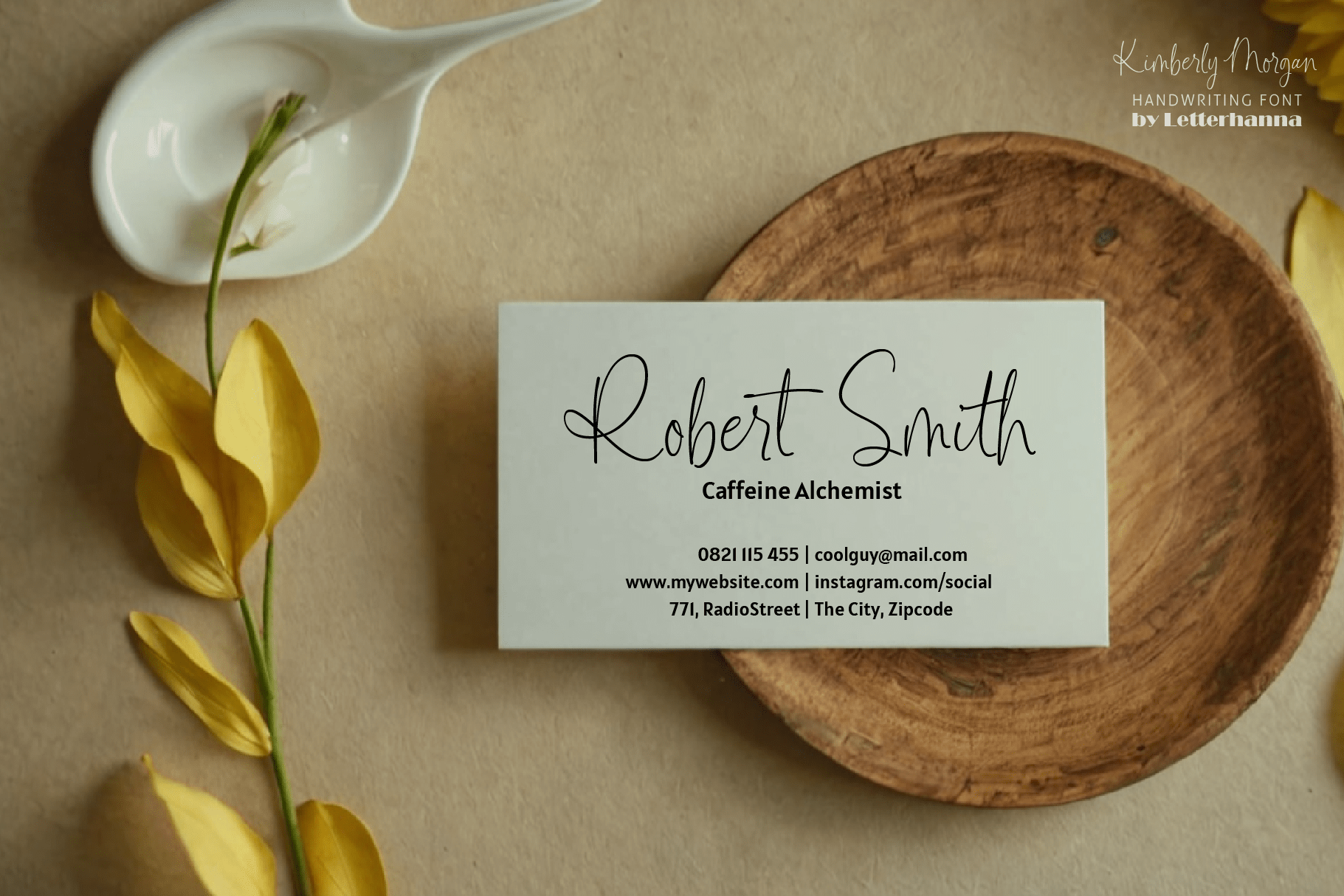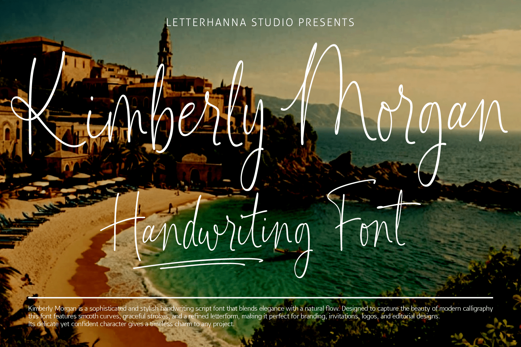 Kimberly Morgan is a refined and elegant stylish handwriting script font that exudes sophistication and charm. With its smooth strokes and natural flow, this font is perfect for branding, invitations, logos, and more.