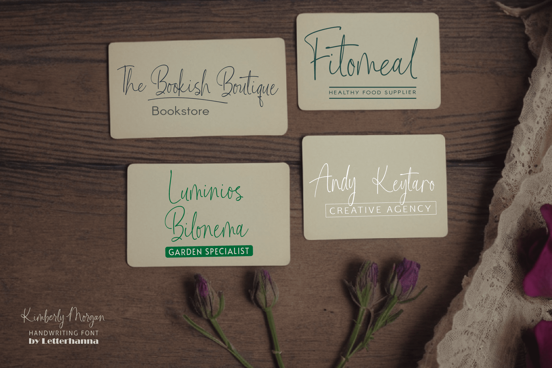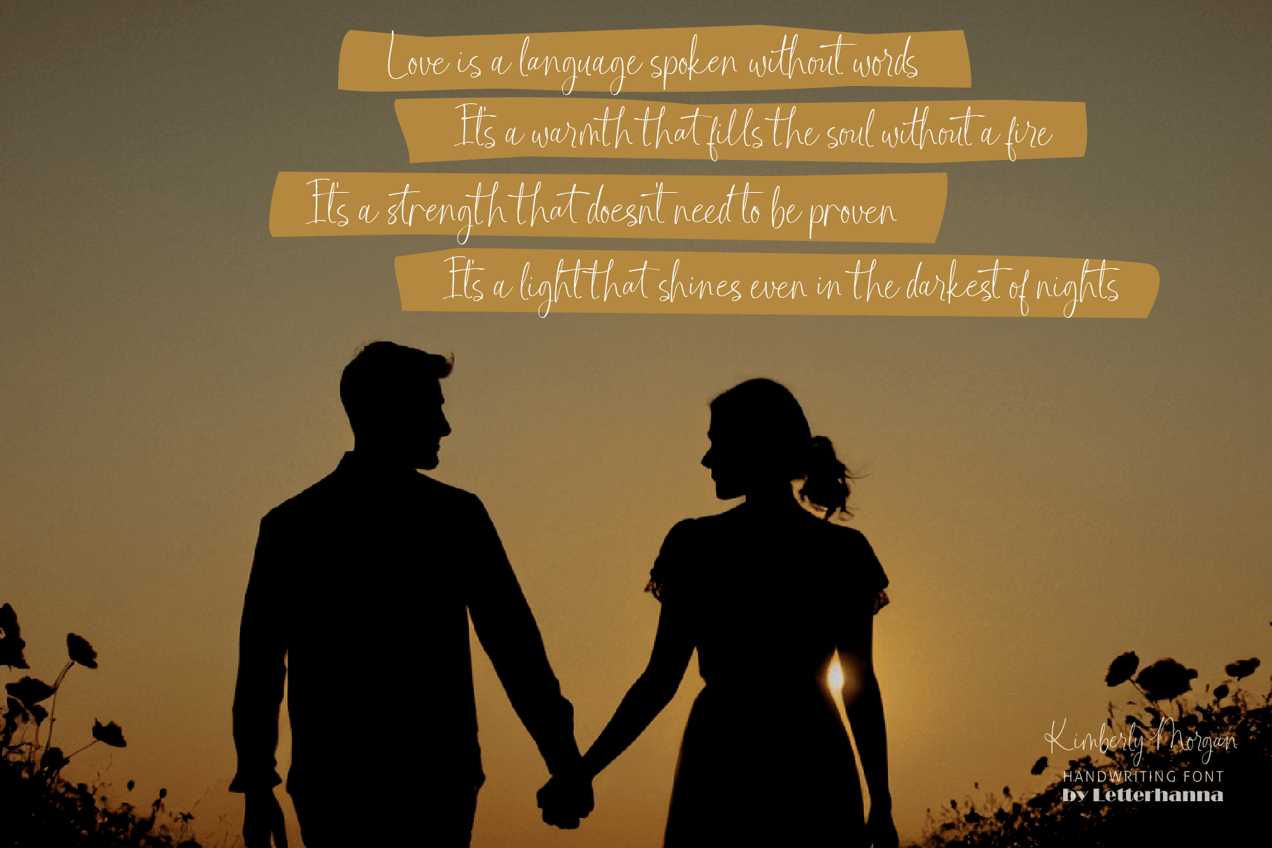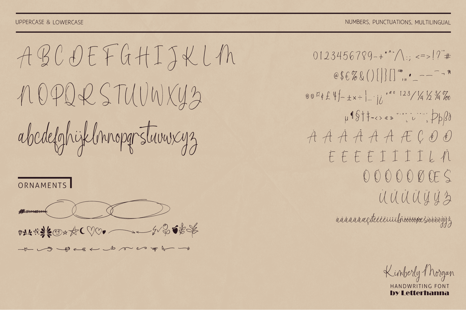 Kimberly Morgan is a refined and elegant stylish handwriting script font that exudes sophistication and charm. With its smooth strokes and natural flow, this font is perfect for branding, invitations, logos, and more.