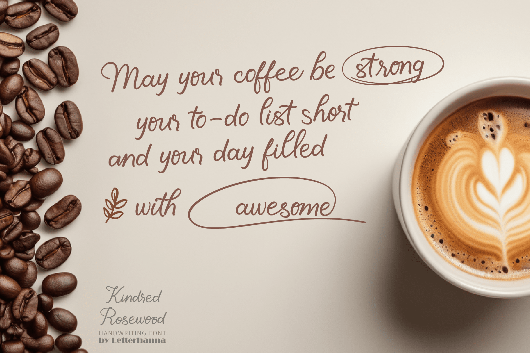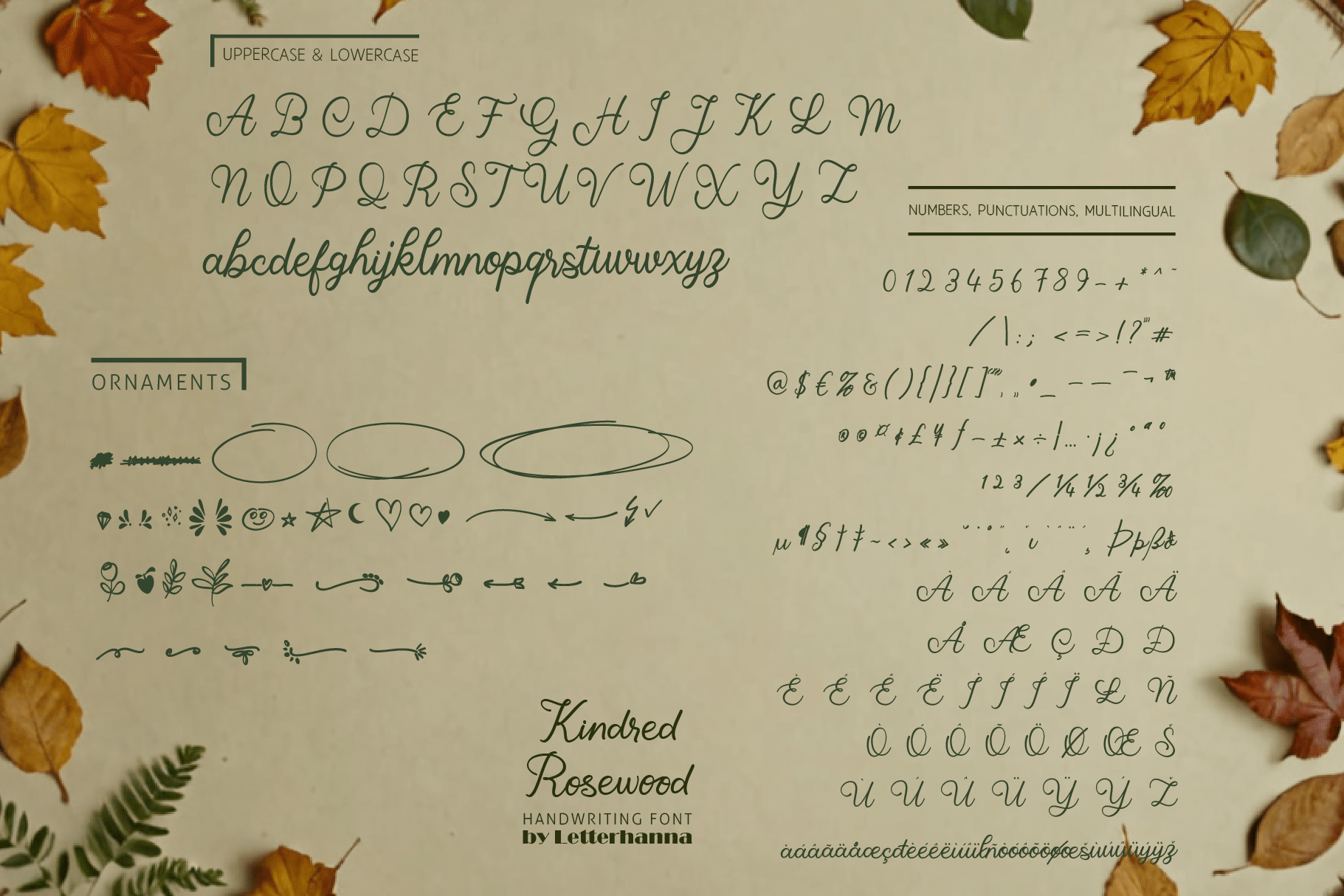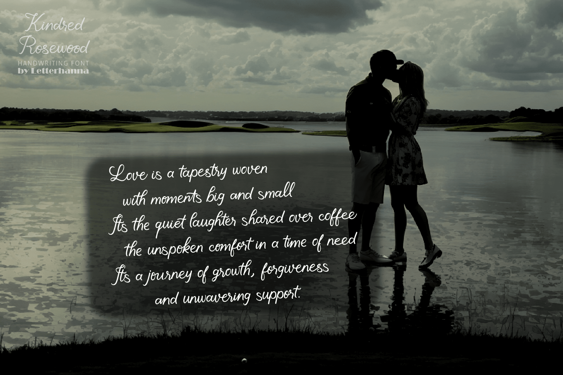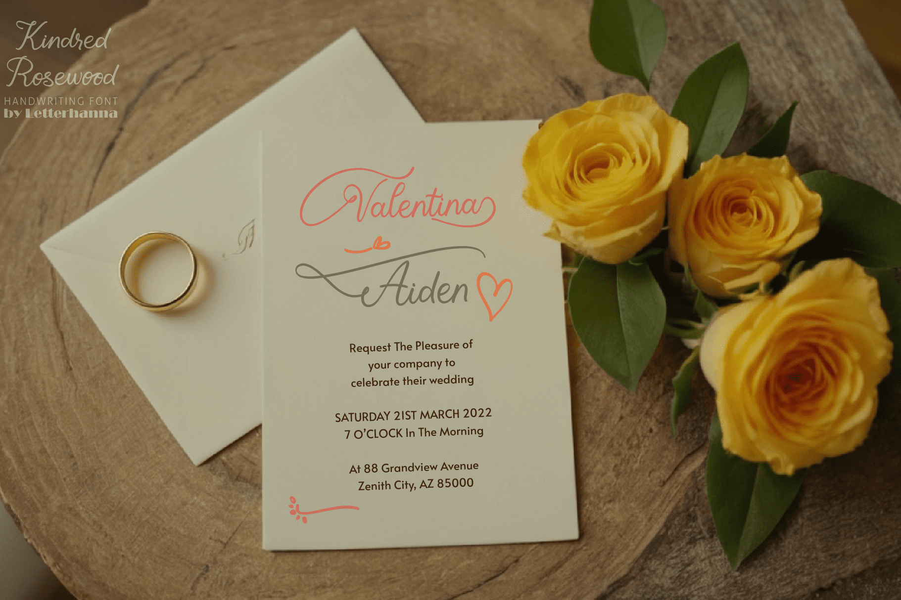 Kindred Rosewood is a beautiful new handwriting script font that combines organic, flowing letterforms with a touch of elegance. Its curves and strokes evoke a warm, natural feeling, making it perfect for a wide range of creative projects, from branding and logos to invitations and quotes. The font’s unique balance of readability and artistic flair gives it a sophisticated yet approachable look, ideal for adding personality to designs while maintaining clarity. Whether used for modern designs or vintage-inspired projects, Kindred Rosewood brings a timeless charm with a contemporary twist.
