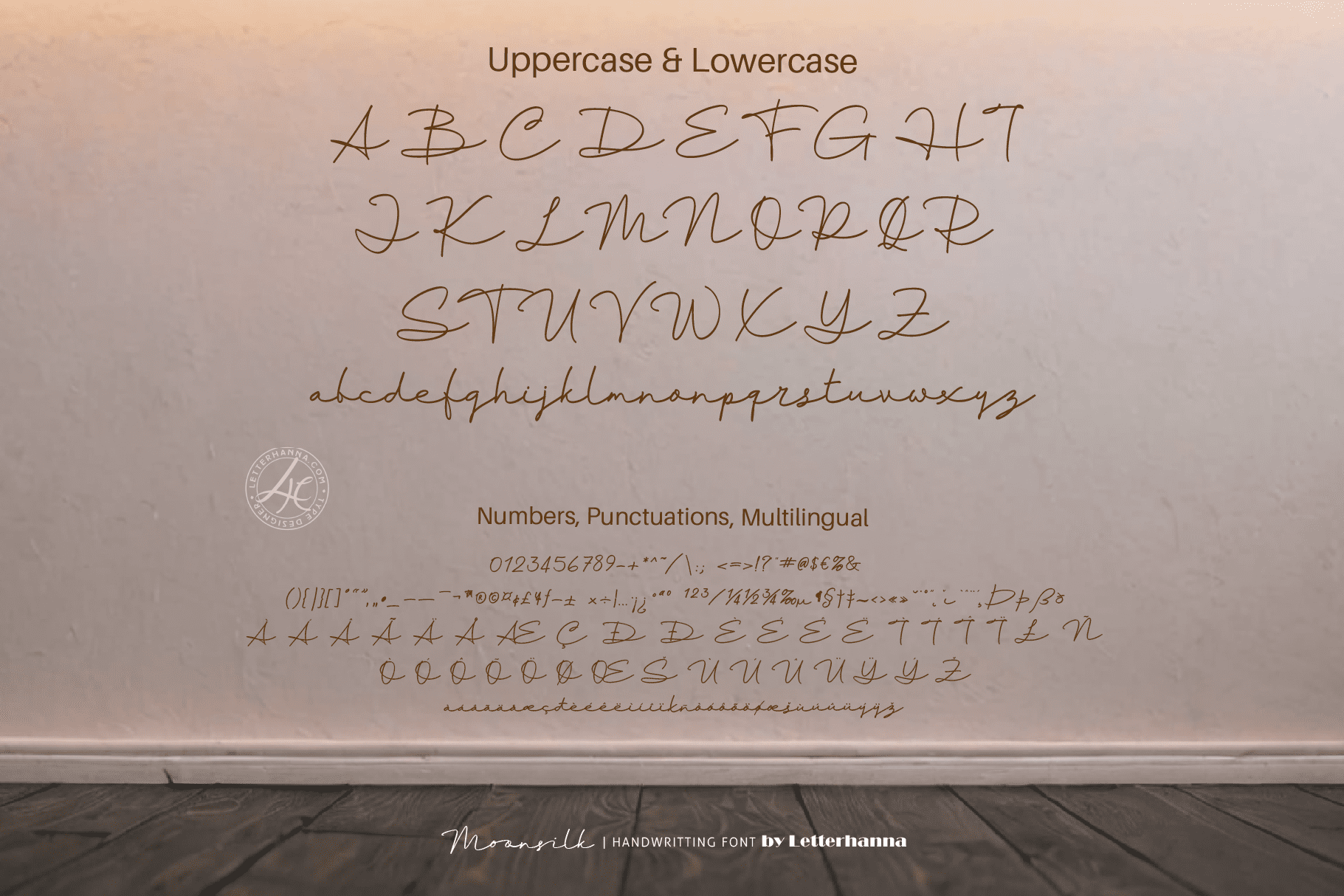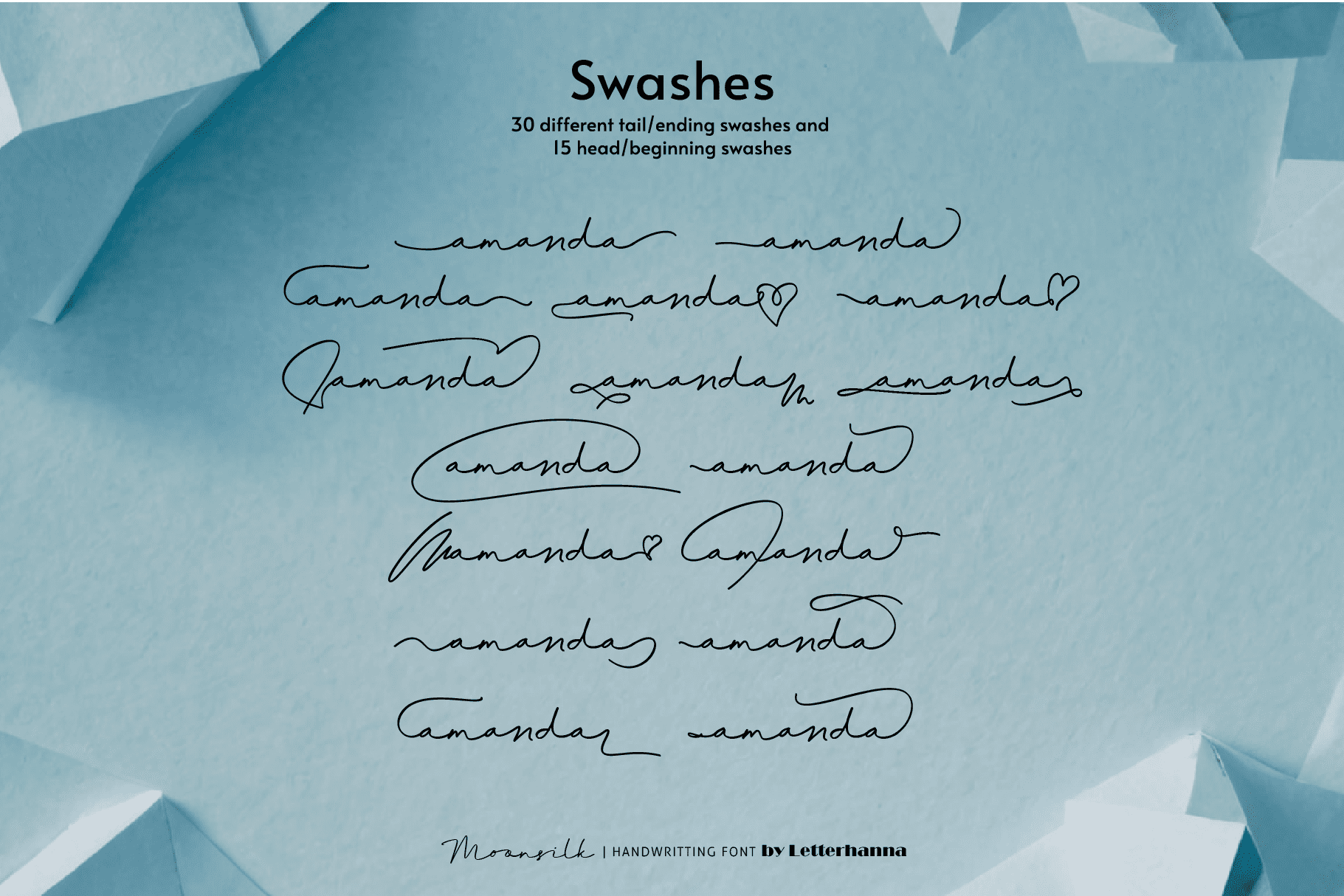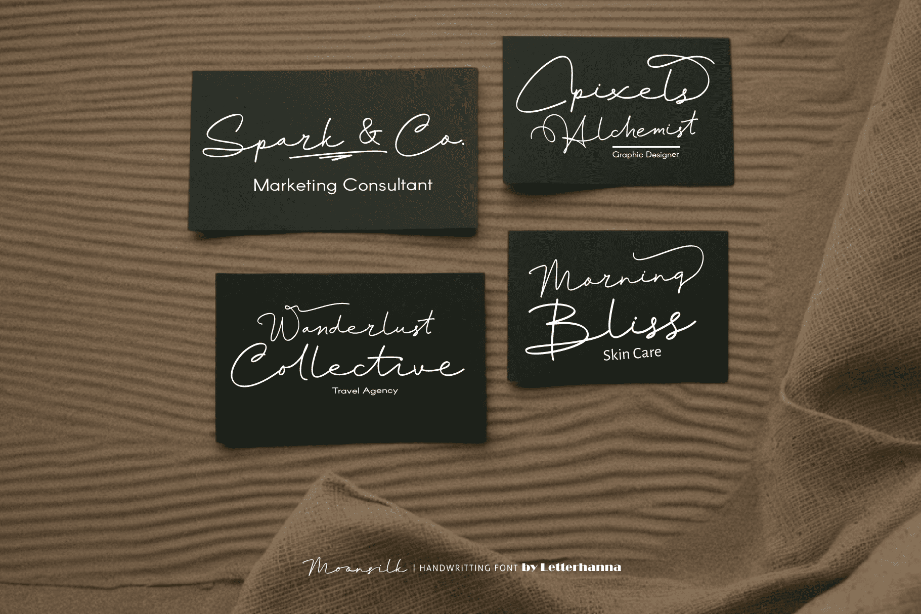 Moonsilk is a typeface that captures the luminous quality of moonlight woven into the delicate threads of silk. Its soft curves and pearlescent sheen evoke a sense of luxury and otherworldly beauty.