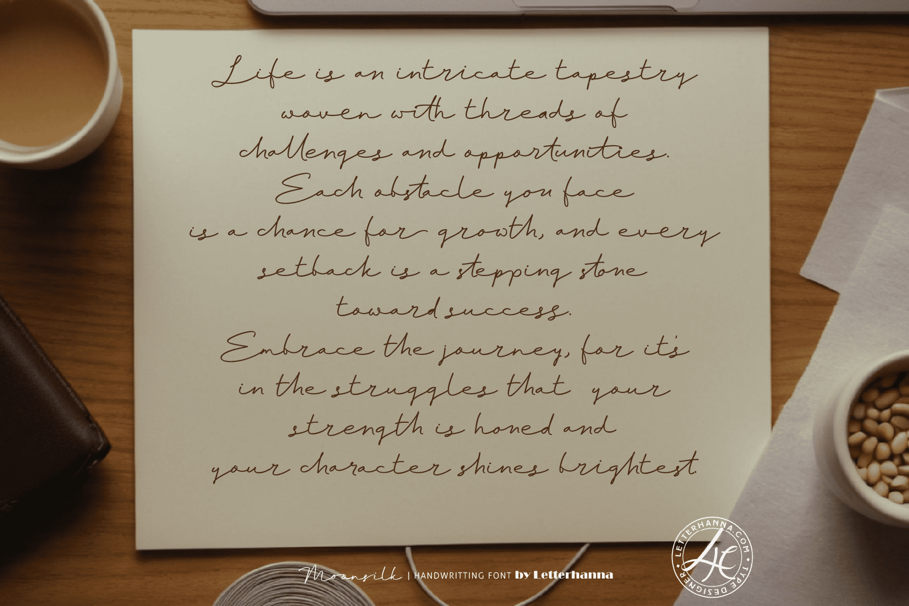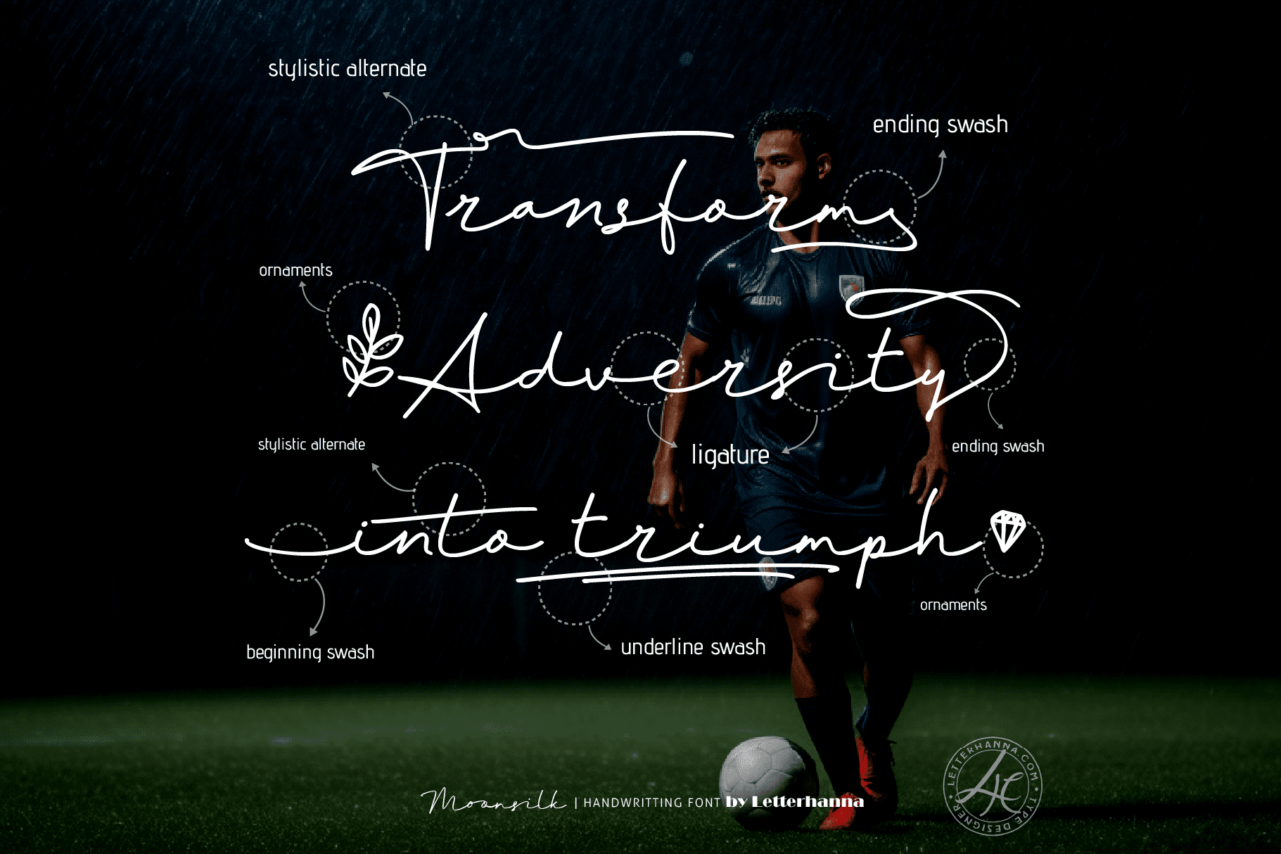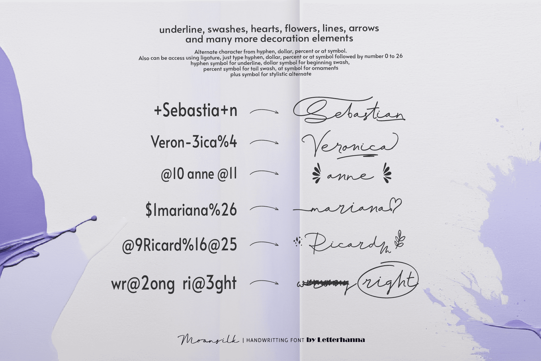Moonsilk is a typeface that captures the luminous quality of moonlight woven into the delicate threads of silk. Its soft curves and pearlescent sheen evoke a sense of luxury and otherworldly beauty.