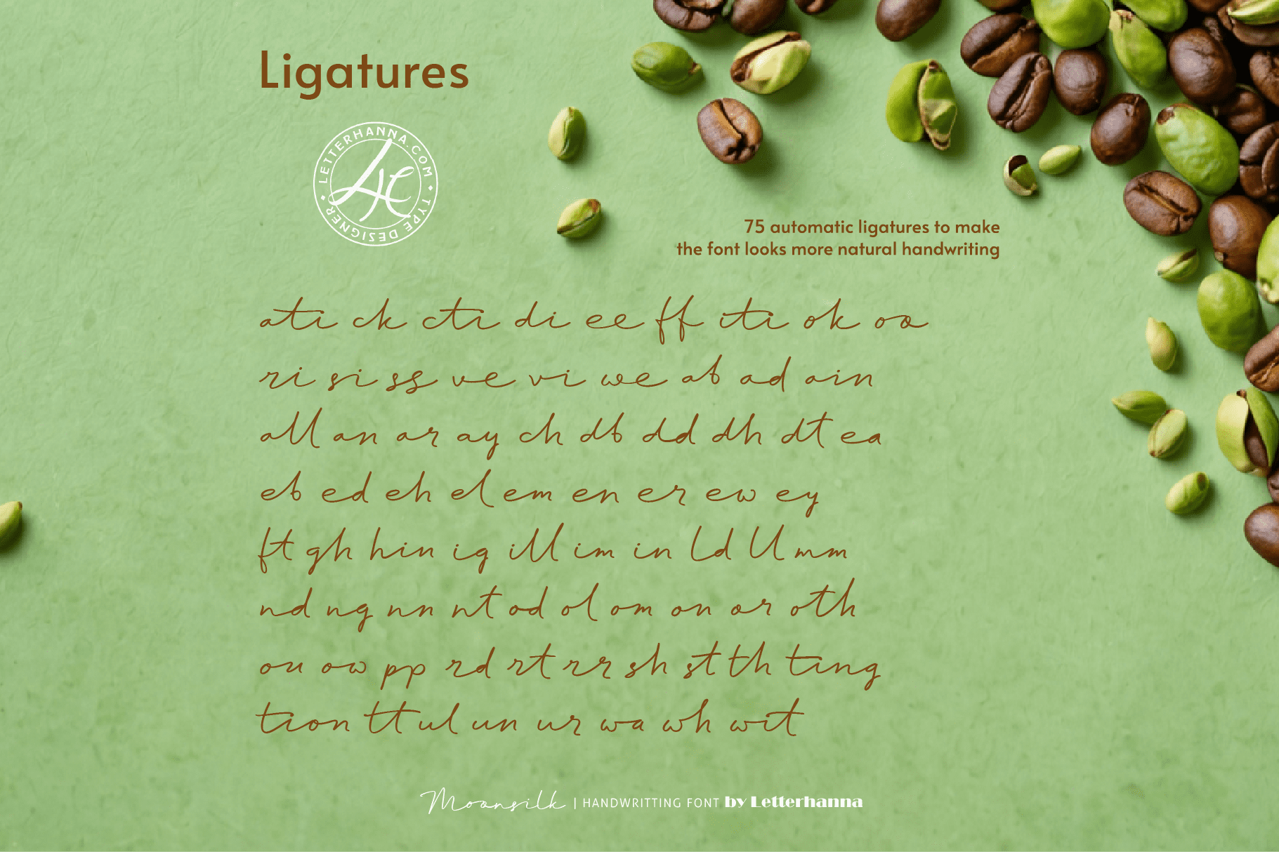 Gain easy access to all alternate glyphs, swashes, ornaments, and underlines by simply using ligatures. You can try them out yourself in the font preview tool on our website, letterhanna.com.