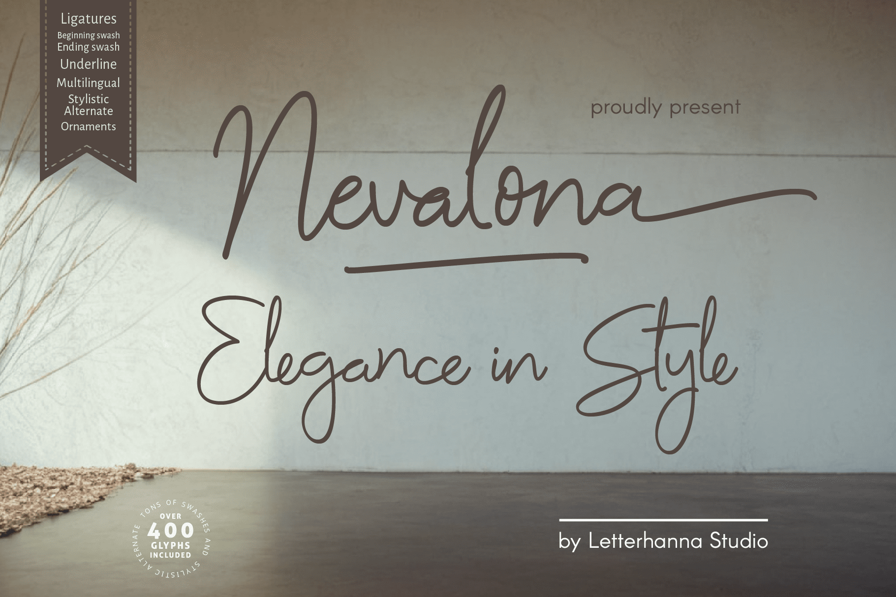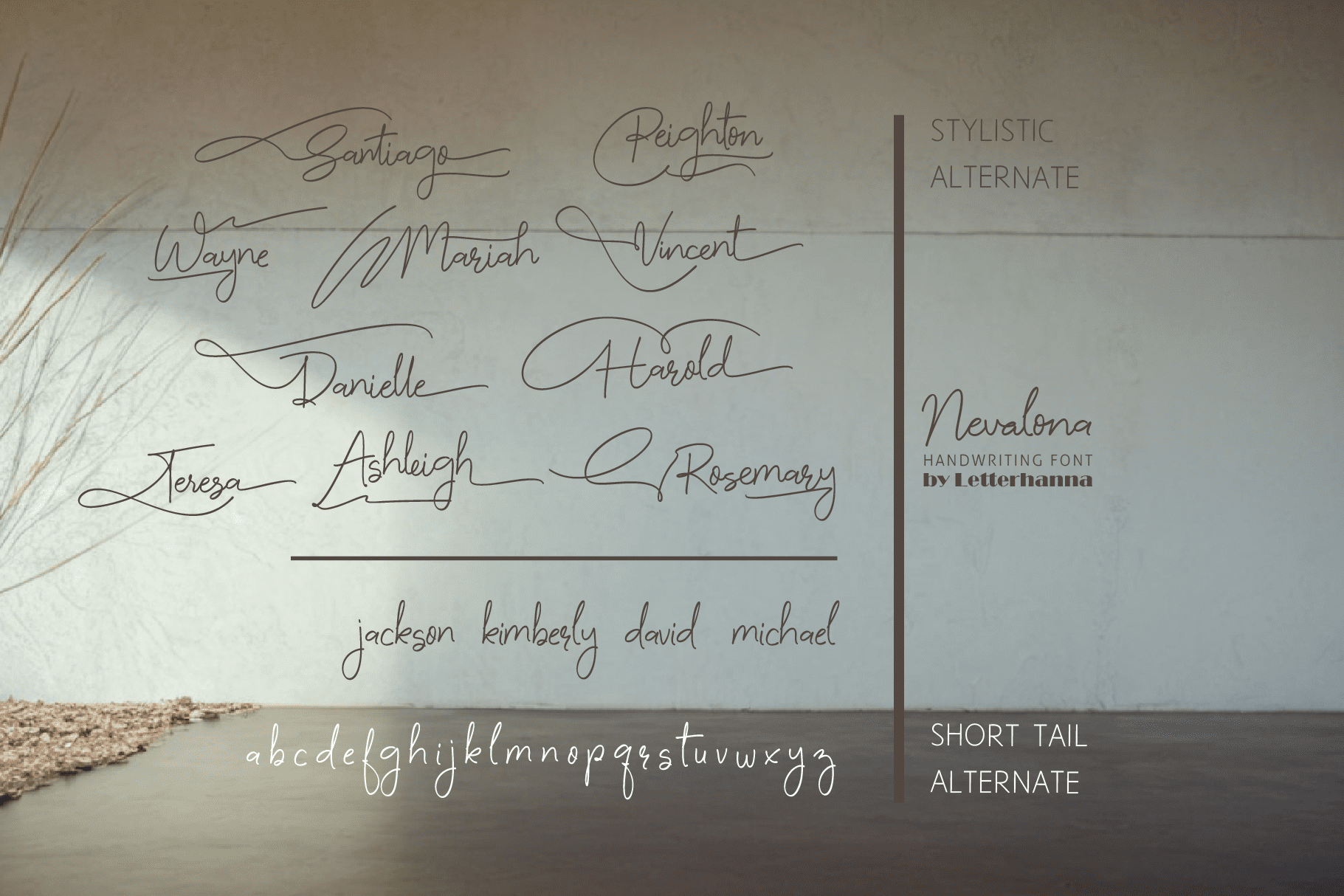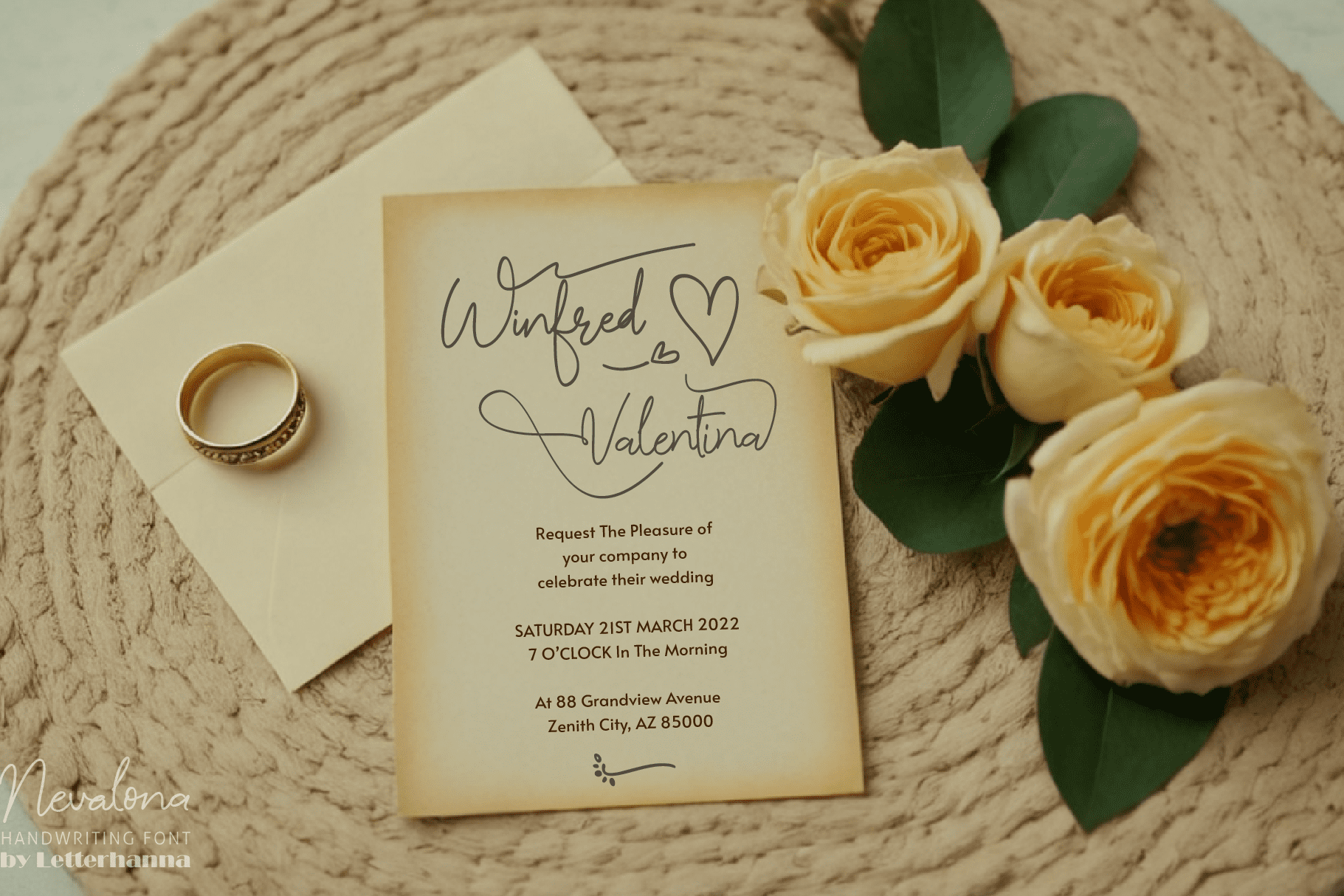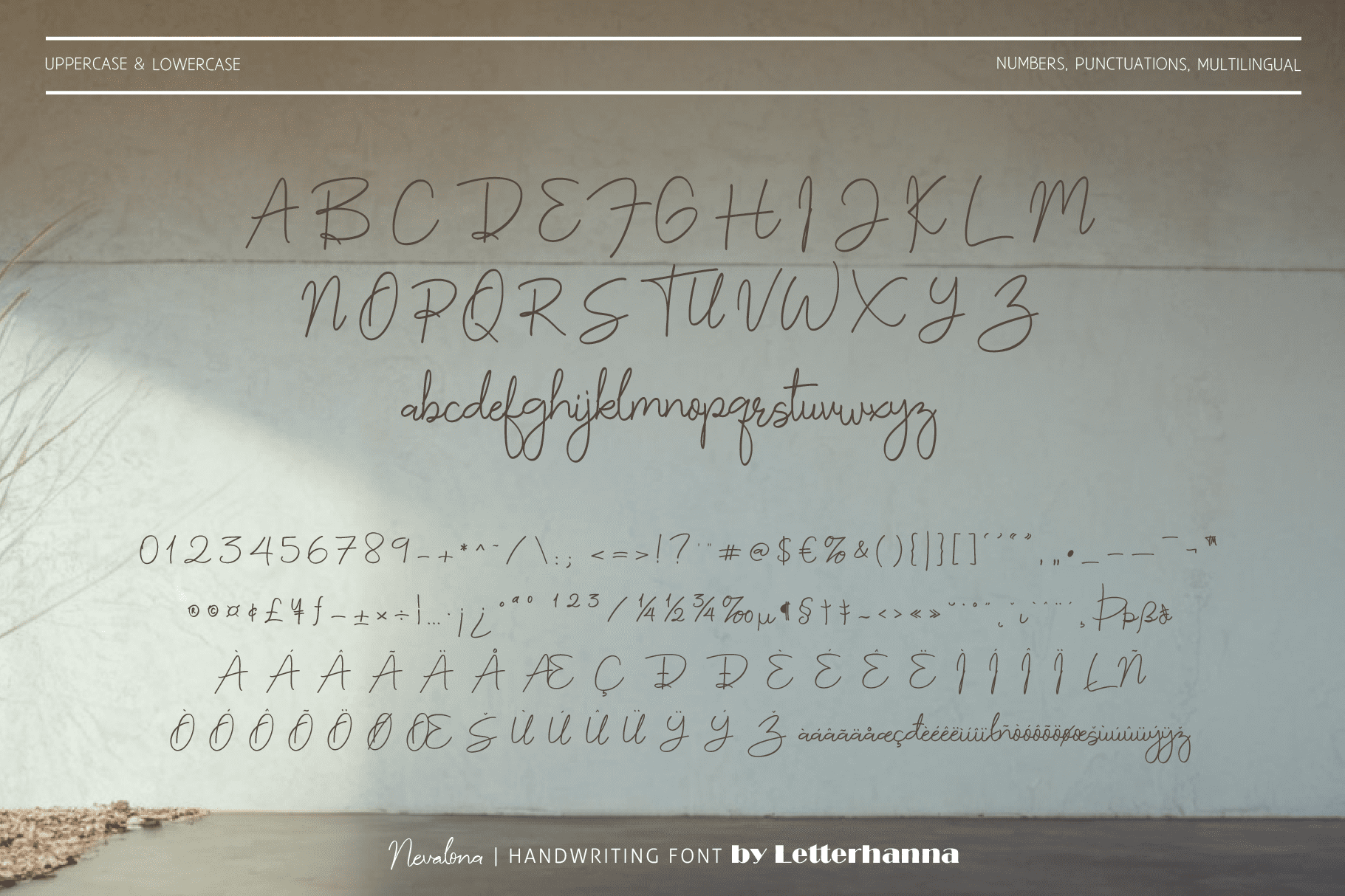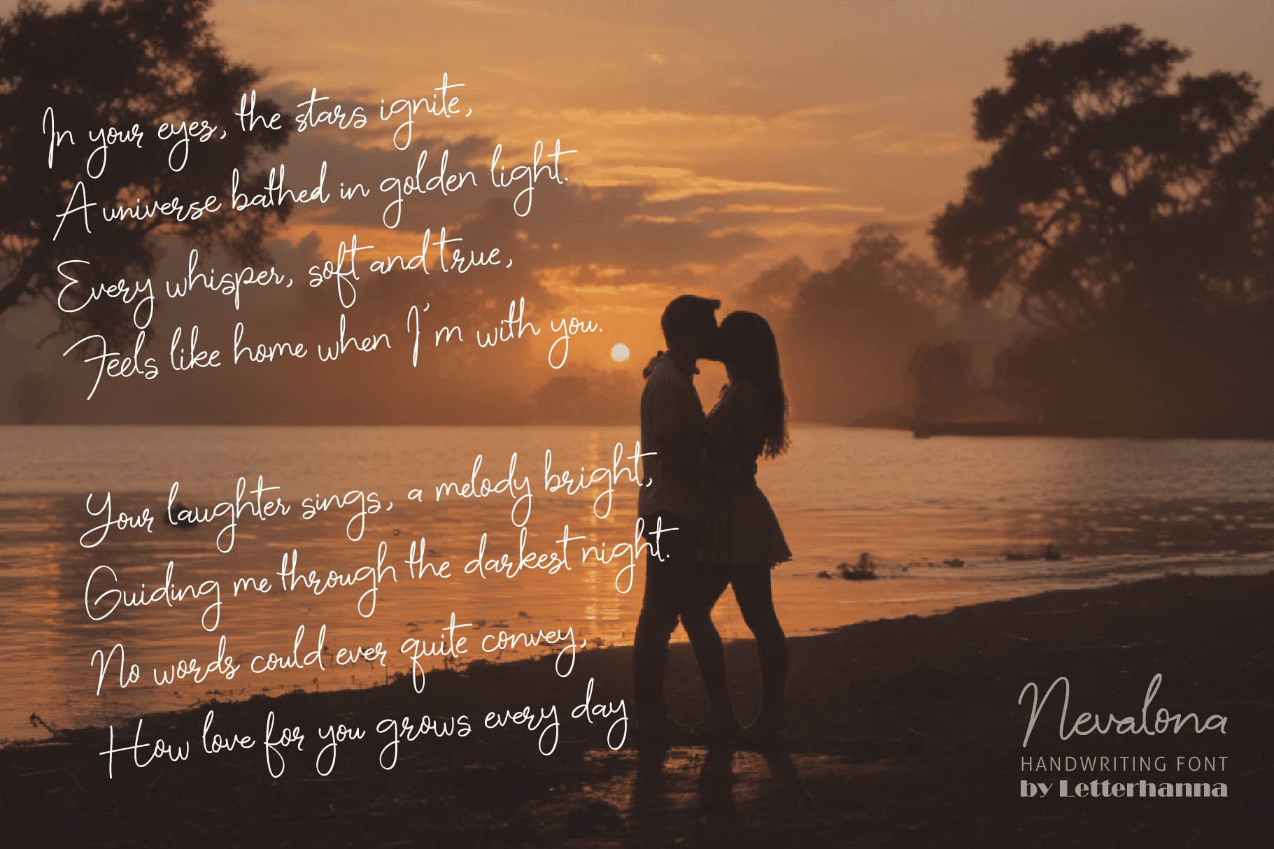 Introducing Nevalona, a beautifully crafted handwriting script font that blends elegance with a modern touch. With its smooth, flowing strokes and natural penmanship, Nevalona captures the essence of effortless sophistication, making it perfect for branding, invitations, logos, and creative projects. Let your words shine with a font that feels both personal and timeless.