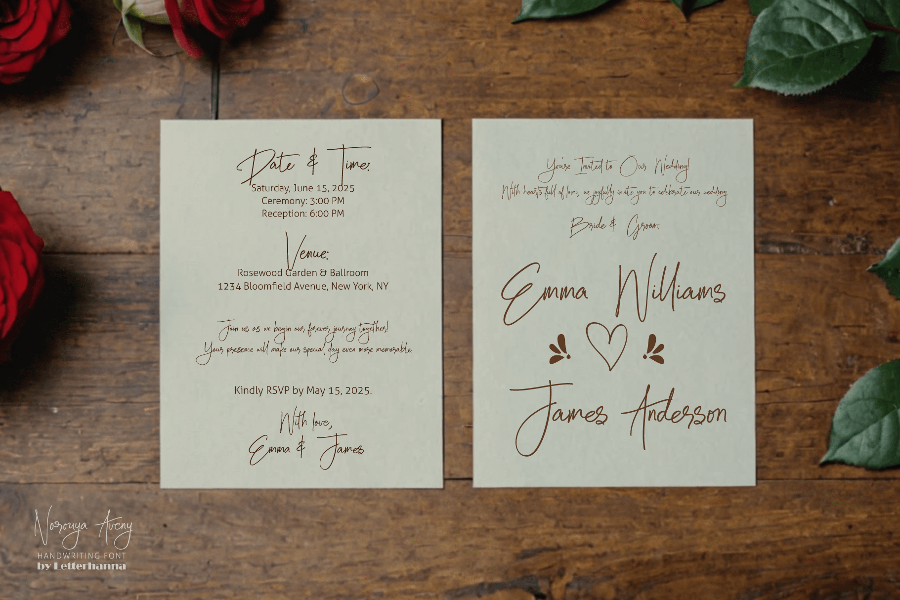 Introducing Norouya Aveny β a charming new script font that brings elegance and personality to every letter you type. With its graceful handwritten strokes, this font is designed to give your work a custom, crafted feel β perfect for branding, invitations, packaging, social media, and anything that needs a stylish personal touch.